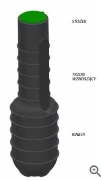 • Budowa: stożek, trzon wznoszący, kineta (podstawa studni)