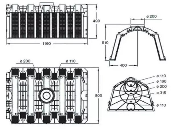 - Wbudowany system rozsączania w tunelach o pojemności 300 litrów zapewnia skuteczne odprowadzanie oczyszczonych ścieków
