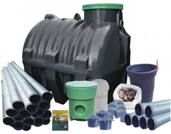 - Kompletny zestaw z jednokomorowym zbiornikiem o pojemności 3000 litrów z koszem filtracyjnym zabezpieczającym system.
