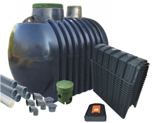 - Kompletny zestaw obejmujący zbiornik, kosz filtracyjny, tunele rozsączające oraz biopreparat