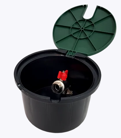 Ten element pozwala na łatwy i bezpieczny dostęp do wody z instalacji, ułatwiając jej pobór oraz podłączenie węża ogrodowego czy innego wyposażenia. Dzięki wysokiej odporności na promieniowanie UV oraz wykonaniu z polietylenu wysokiej gęstości (PEHD), studzienka jest trwała i odporna na warunki atmosferyczne.
