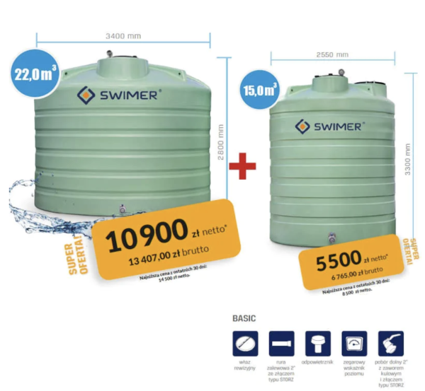 Zestaw zbiorników Agro-Water Tank marki Swimer to rozwiązanie łączące wysoką pojemność z praktycznym wyposażeniem oraz niskimi kosztami magazynowania. Wybierając ten produkt, inwestujesz w funkcjonalność i efektywność, usprawniając zarządzanie cieczami w swoim gospodarstwie lub firmie.